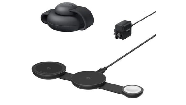 یکی دیگر از محصولاتی که در لیست بهترین شارژر بی سیم جایگاه ویژهای دارد شارژر وایرلس انکر مدل A25M1 است که میتواند سه دستگاه را به صورت همزمان شارژ کند. این شارژ همراه خود یک کله شارژ 40 واتی دارد که شما را از خرید اداپتور انکر بینیاز خواهد کرد. از طرفی دیگر این شارژ از قابلیت MagSafe پشتیبانی میکند و میتوانید آن را به یک استند برای گوشی یا ساعت هوشمند خود تبدیل کنید؛ همچنین میتوانید در حالتی از شارژ استفاده کنید که هر سه دستگاه به صورت افقی روی آن قرار گرفته باشند.