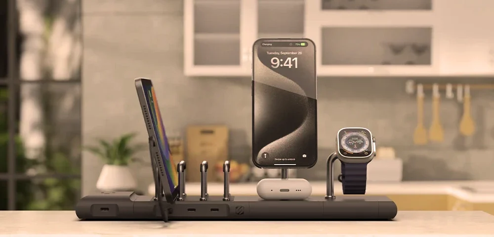 در میان بهترین شارژر وایرلس بازار باید جایگاه بالایی برای مدل 3iN1 Wireless Charging Station گرین لاین قائل باشیم. این شارژر میتواند سه دستگاه را به صورت همزمان شارژ کند و قادر است برای گوشیهای همراه سرعتی معادل 15 وات فراهم کند. این محصول یک پنل LED برای نمایش ساعت هم دارد که آن را به یک اکسسوری زیبا برای میز کار شما تبدیل خواهد کرد.